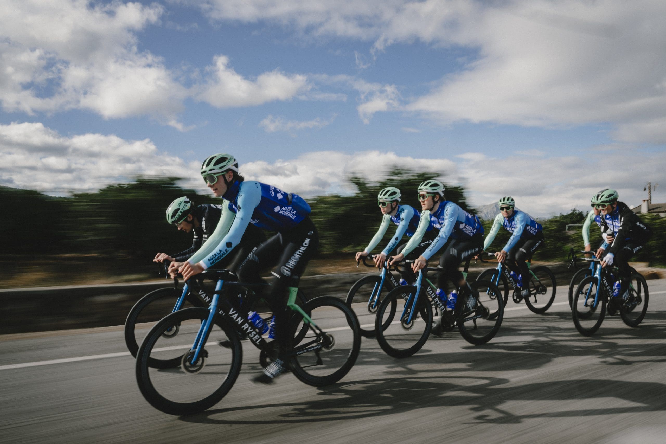La vraie nouveauté avec l’arrivée de Van Rysel dans l’équipe depuis 2024, c’est que nos coureurs sont équipés avec le même partenaire de la tête aux pieds : des gants, au casque en passant par le vélo. “C’est vraiment un plus énorme, car lorsqu’on cherche à améliorer un produit, on ne réfléchit pas individuellement avec le partenaire mais de manière globale. C’est indispensable car chaque élément interagit avec l’autre.” précise Mathias. Cela facilite donc les échanges sur les produits et les interactions entre toutes les parties prenantes.