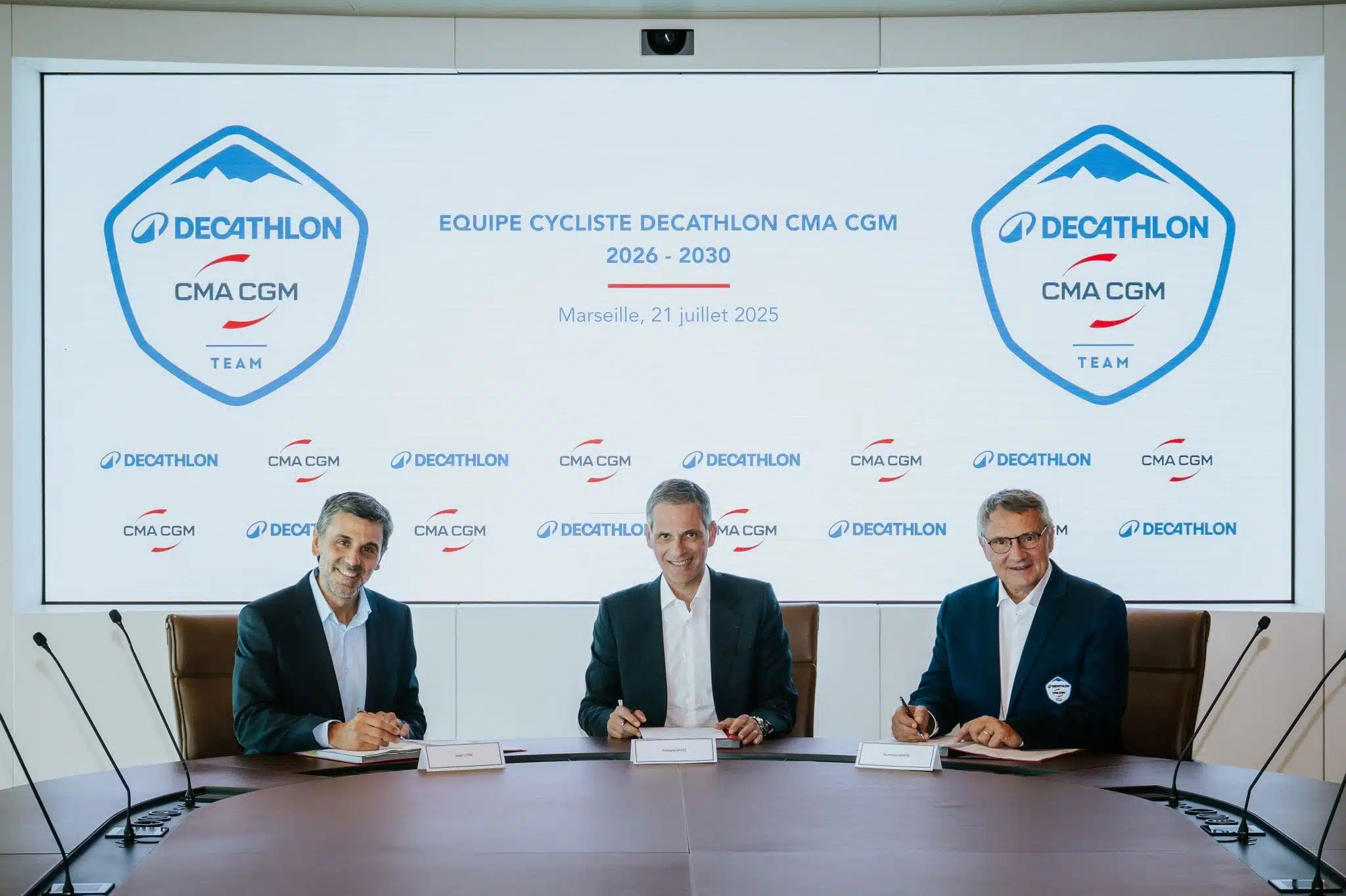 A la suite de l’annonce de l’acquisition de l’équipe cycliste professionnelle par DECATHLON à la fin de la saison 2025, un nouveau chapitre ambitieux s’ouvre. Le Groupe CMA CGM, acteur mondial des solutions maritimes, terrestres, aériennes et logistiques, et des médias, rejoint DECATHLON en tant que partenaire titre pour une durée initiale de cinq ans, renouvelable.