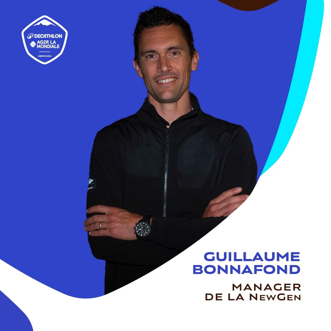 « L’année 2024 a été marquée par la création de la filière NewGen, composée des équipes Espoirs et juniors, au sein de l’équipe DECATHLON AG2R LA MONDIALE. Le travail effectué tout au long de cette première année a porté ses fruits avec de très bons résultats et l’intégration de cinq jeunes coureurs dans l’équipe WorldTour pour la saison prochaine. Il était important de poursuivre sur cette lancée et, dans cette optique, nous sommes ravis d’accueillir Guillaume Bonnafond en tant que manager de la NewGen à compter du 1er octobre 2024. Il a passé quasiment l’intégralité de sa carrière de cycliste professionnel au sein de notre équipe. Il a ensuite été entraîneur, directeur sportif puis directeur de la performance à la Swiss Racing Academy. Enfin, ces deux dernières années, il était l’entraîneur du groupe sprint chez Team DSM-Firmenich PostNL. Son passé de coureur, sa connaissance de l’équipe et son expérience internationale nous ont séduits. Guillaume a le profil idéal. »