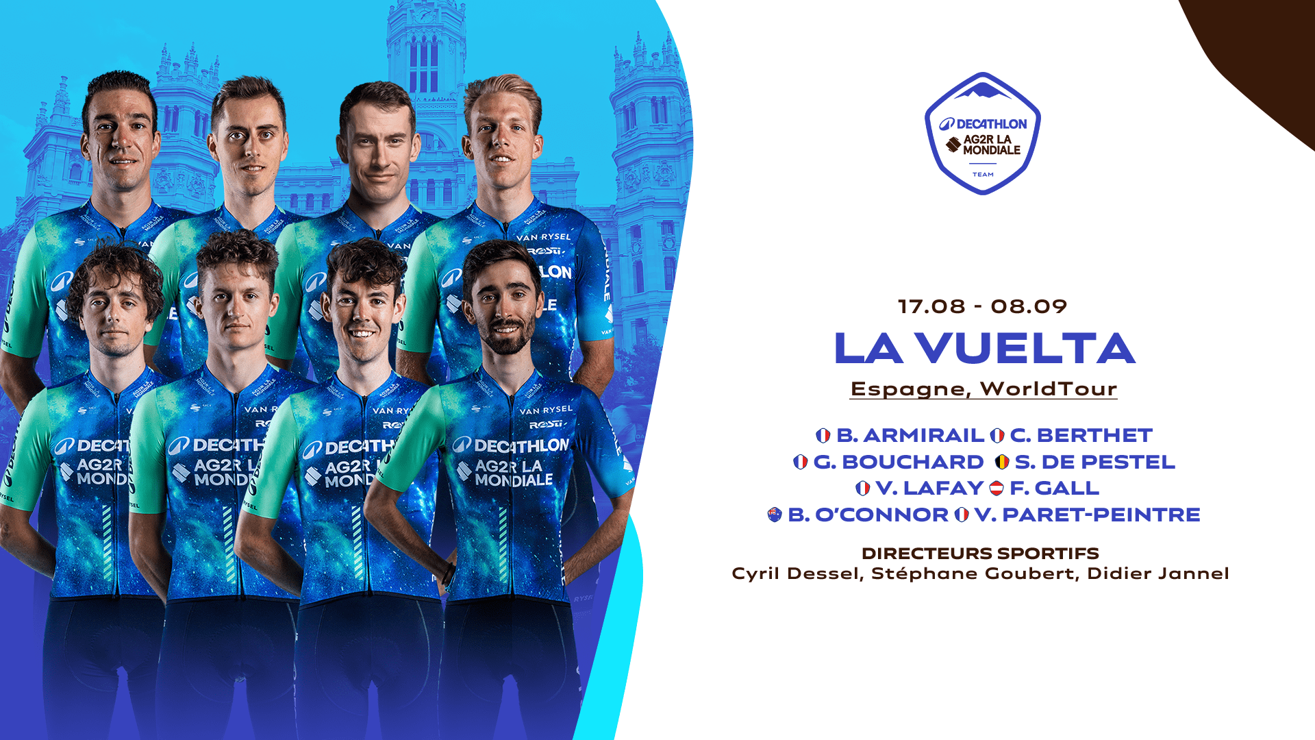 Clément Berthet, Felix Gall, Valentin Paret-Peintre et Sander De Pestel participeront pour la première fois de leur carrière à la la Vuelta Ciclista a España. Il s’agira également du premier Grand Tour pour le coureur belge.