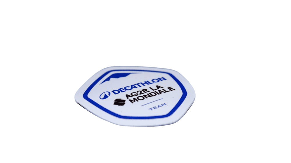 Een sticker van de wielerploeg DECATHLON AG2R LA MONDIALE.