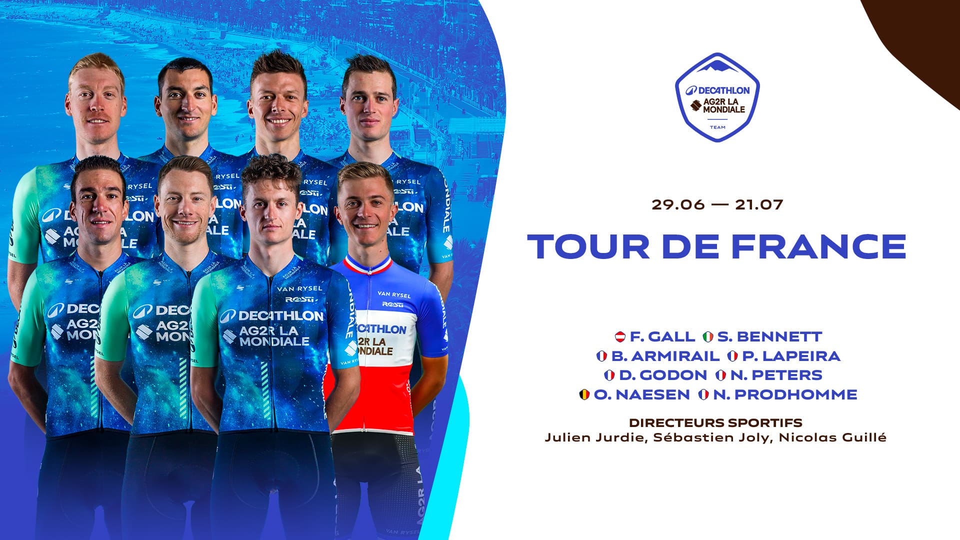 « Nous avons un double objectif à l’entame de ce Tour de France. Tout d’abord, c’est de confirmer notre performance de l’année dernière au classement général avec Felix Gall. Et ensuite, nous venons également chercher au moins une victoire d’étape. Sam Bennett sera l’une de nos meilleures chances lors des arrivées au sprint, mais nous avons également d’autres coureurs capables de lever les bras. Je pense à Dorian Godon et à Paul Lapeira qui, en cas d’arrivée en petit comité, peuvent faire parler leur pointe de vitesse. Nous sommes ambitieux, avec un beau collectif et un très bon grimpeur comme Felix Gall. Nous avons régulièrement obtenu de bons résultats sur le Tour de France, c’est dans notre identité, donc nous allons nous battre pour cela, avec une équipe solide et motivée. »