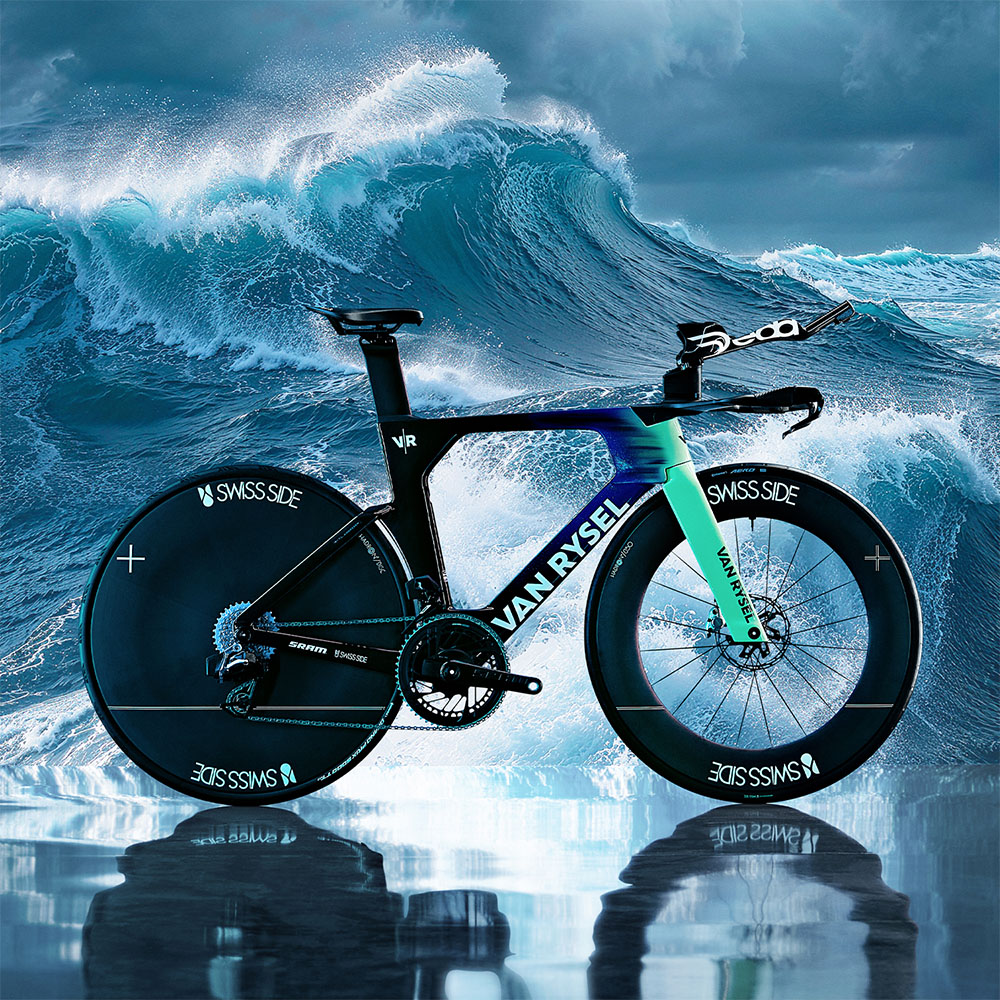Pour le RCR-X, VAN RYSEL a sollicité SWISS SIDE, connu pour son expérience en Formule 1 depuis 50 ans, mais aussi dans l’industrie du cyclisme pour ses recherches en terme d’aérodynamisme et d’innovation. SWISS SIDE équipera également avec ses roues, les vélos VAN RYSEL des équipes DECATHLON CMA CGM.