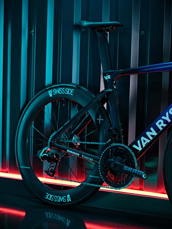 Pour le RCR-X, VAN RYSEL a sollicité SWISS SIDE, connu pour son expérience en Formule 1 depuis 50 ans, mais aussi dans l’industrie du cyclisme pour ses recherches en terme d’aérodynamisme et d’innovation. SWISS SIDE équipera également avec ses roues, les vélos VAN RYSEL des équipes DECATHLON CMA CGM.